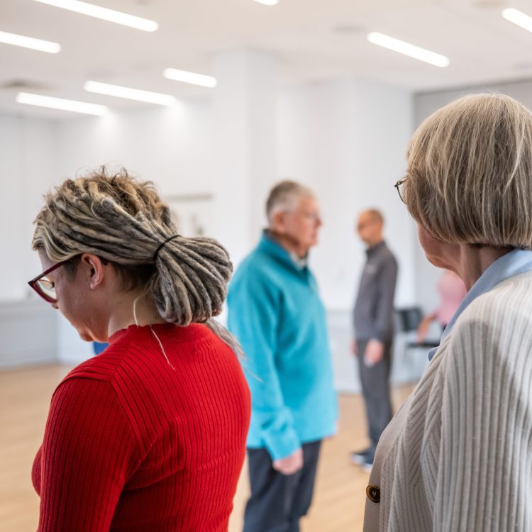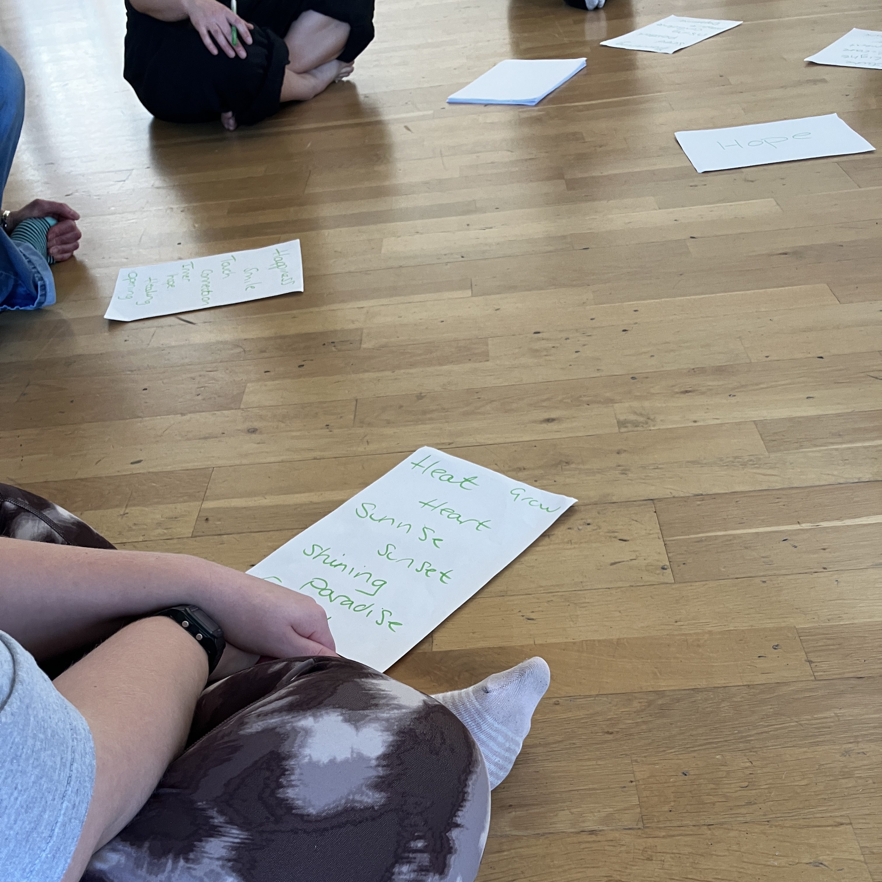 Gemma says, “let’s make a performance of our work”. The group exchange glances with each other, expressions of belief in one another, the feeling that we can do this!