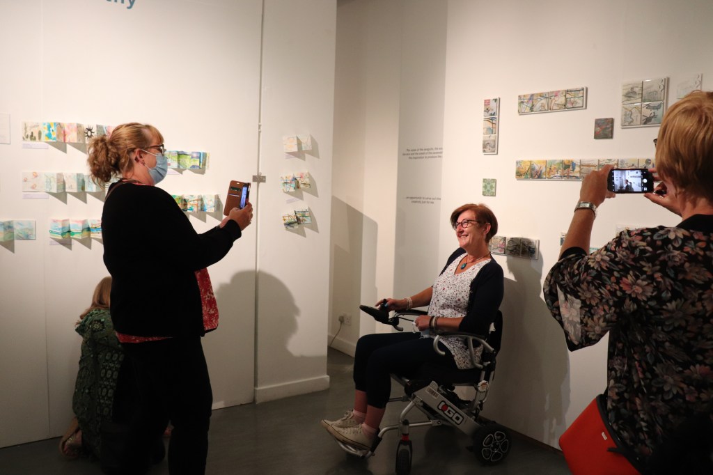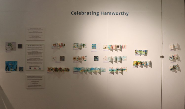 Our approach focused on working with different creative techniques, and celebrating the local area. Each session or task involved using memories, or experiences of place to inspire the work. Our community artists worked on concertina books, and at the end of the sessions were invited to select ‘squares’ for the exhibition.
