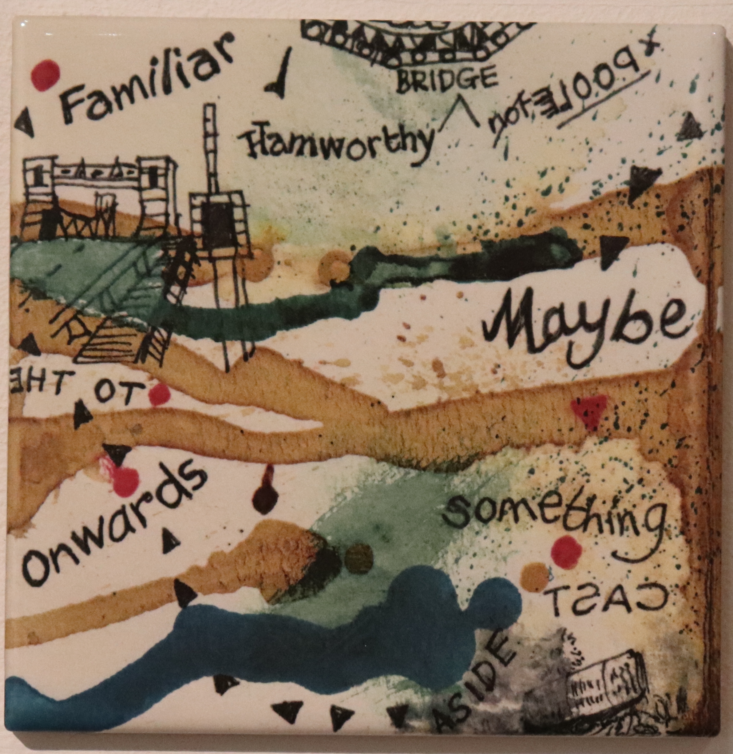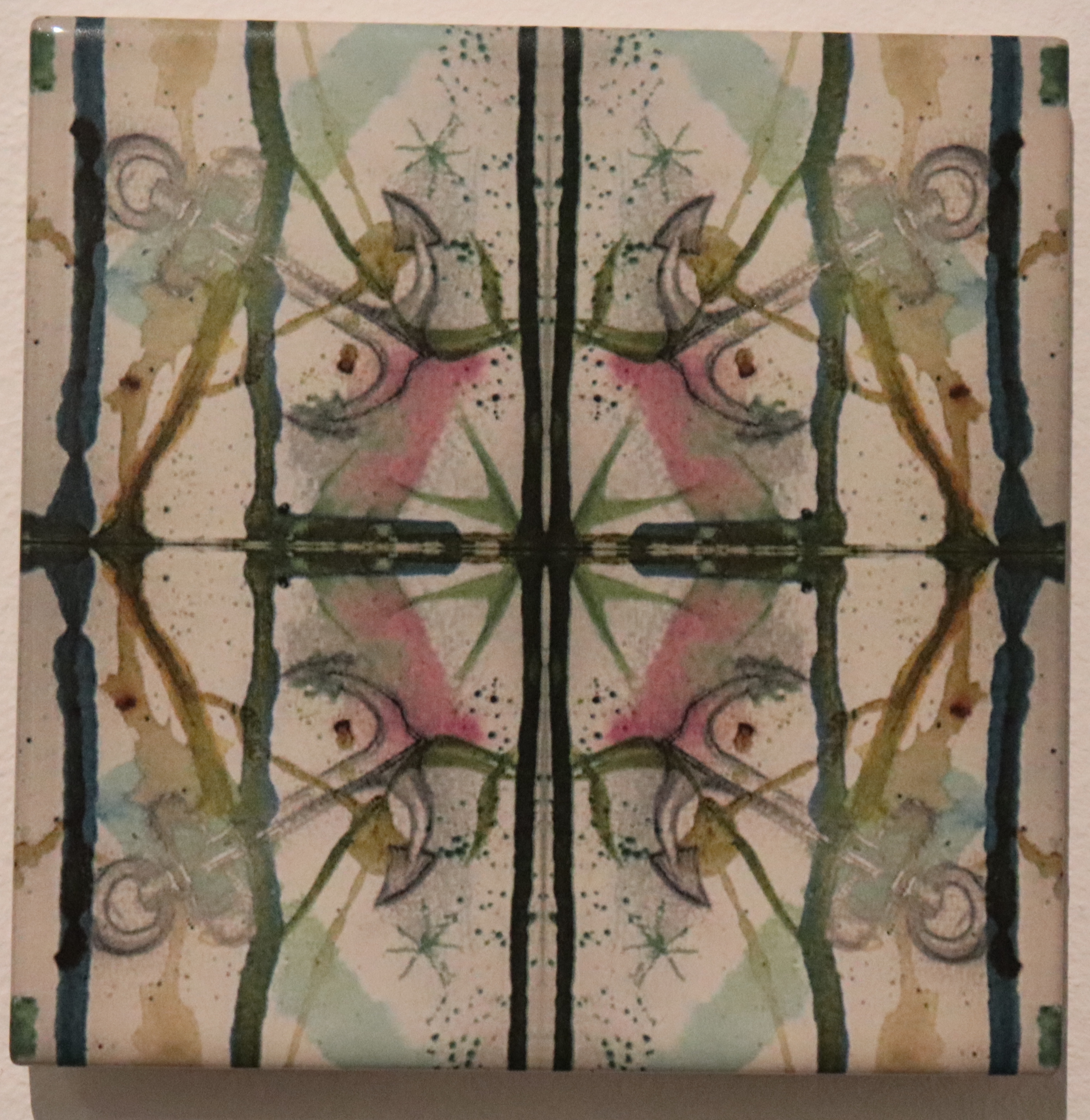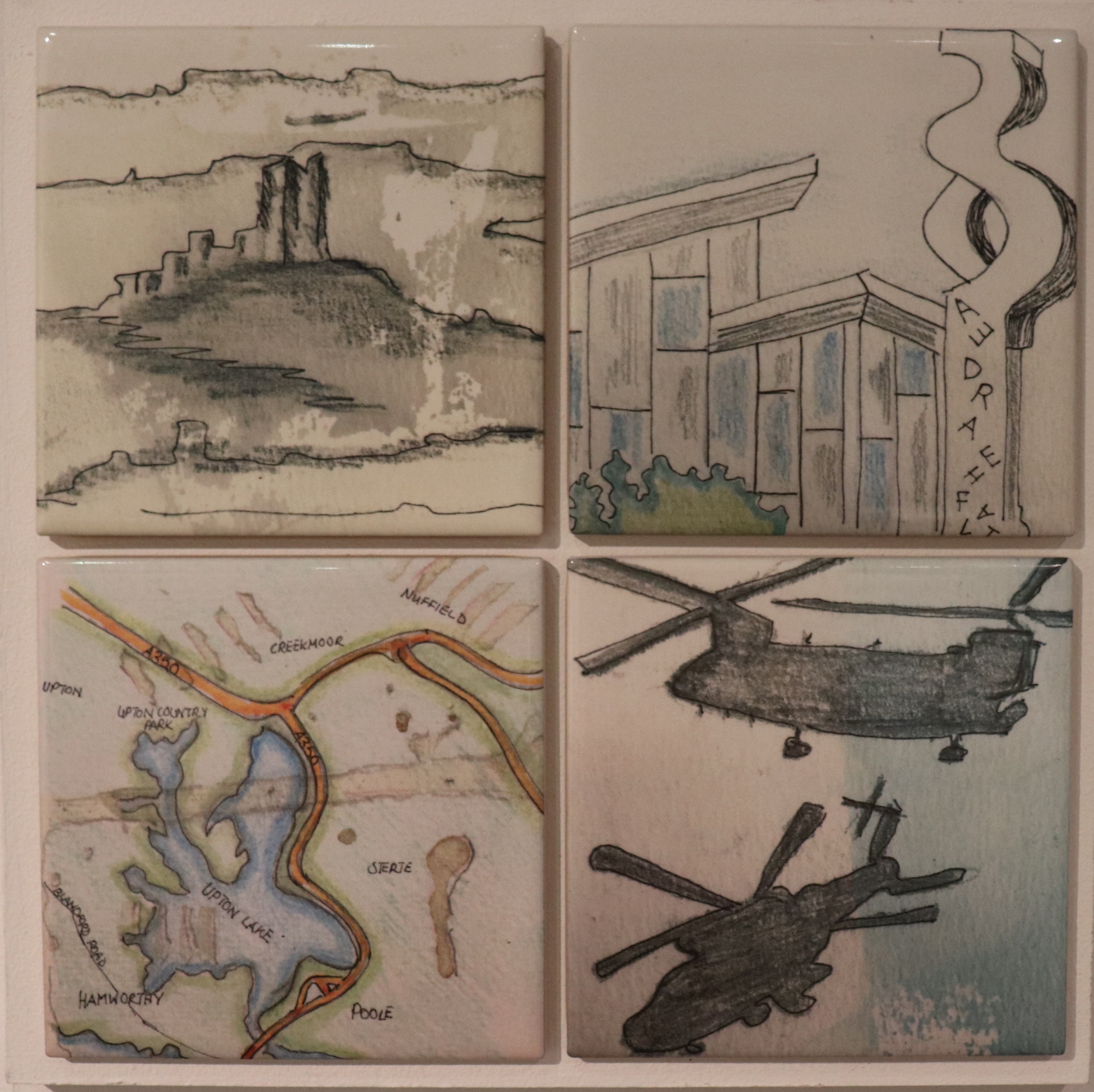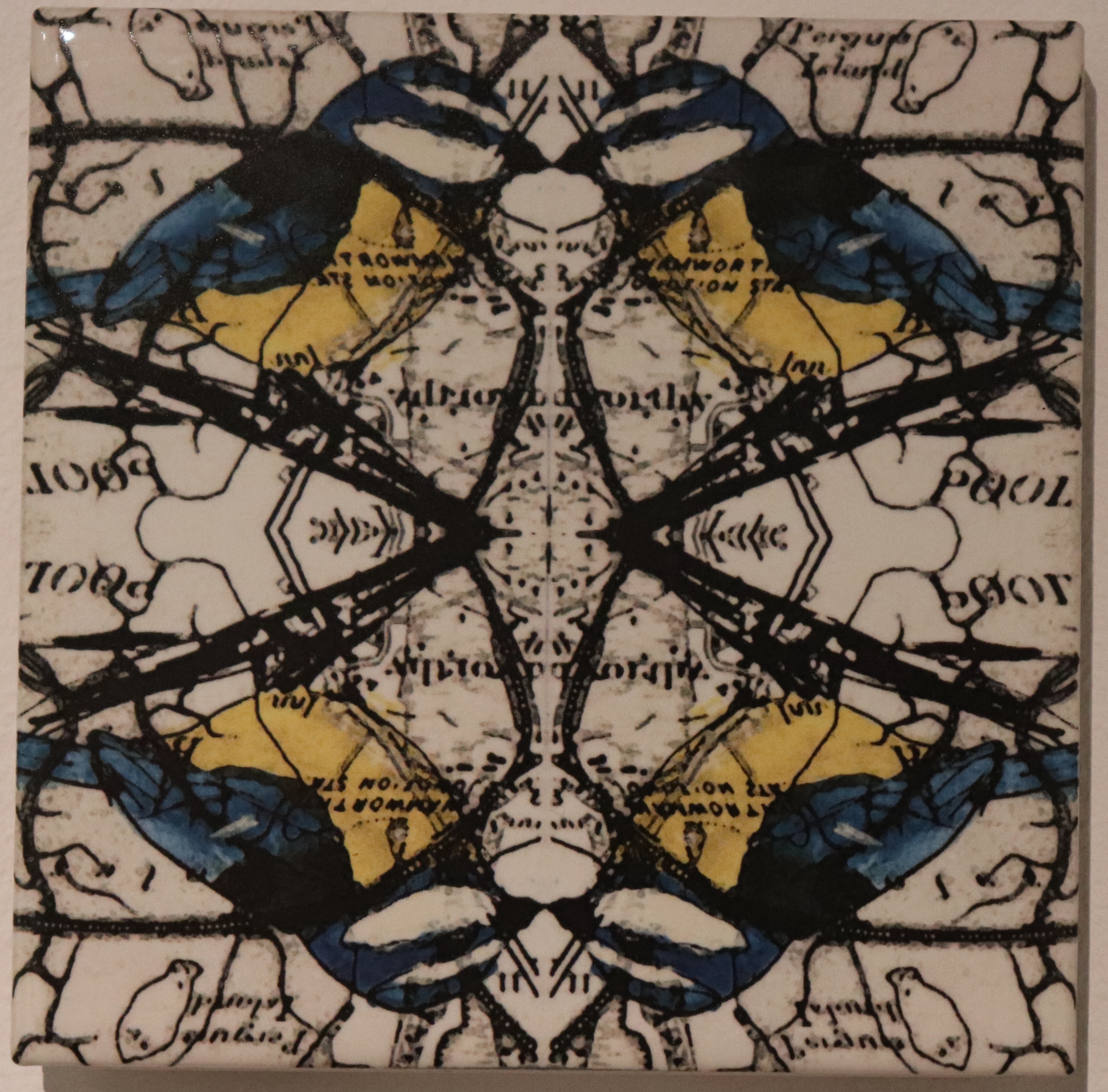 The selected work was then printed onto ceramic tiles, and mounted for installation, along with a selection of the original artwork revealing the process.