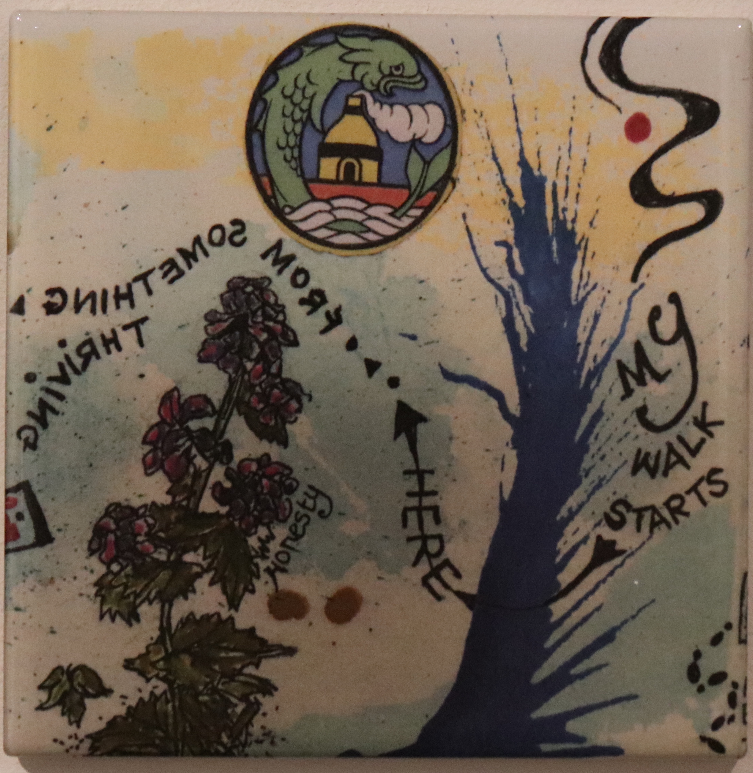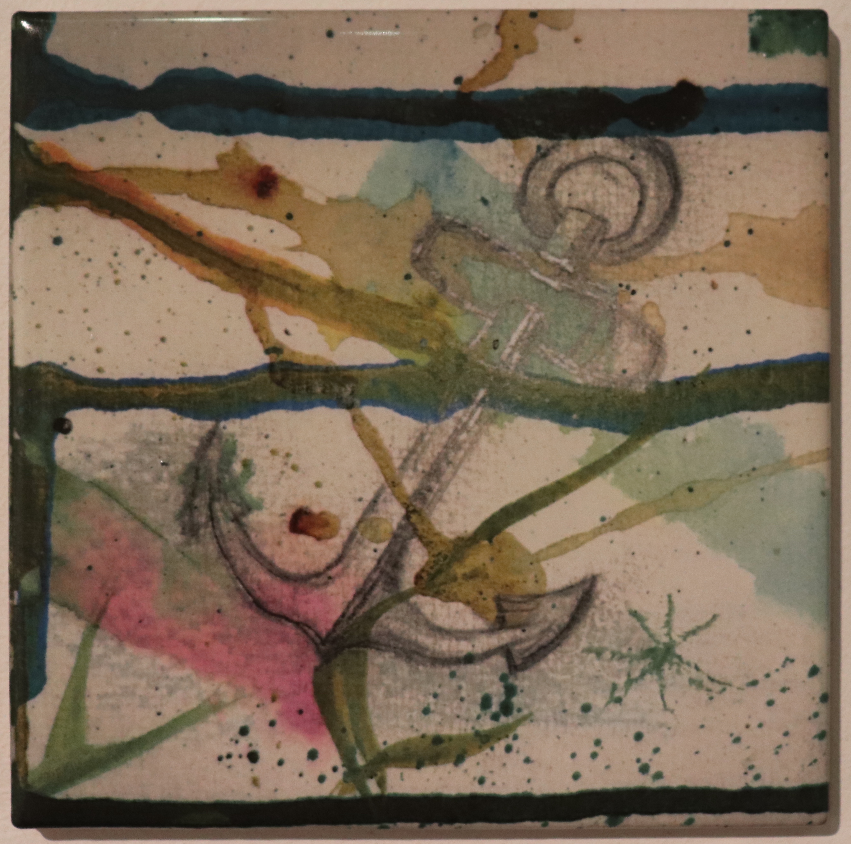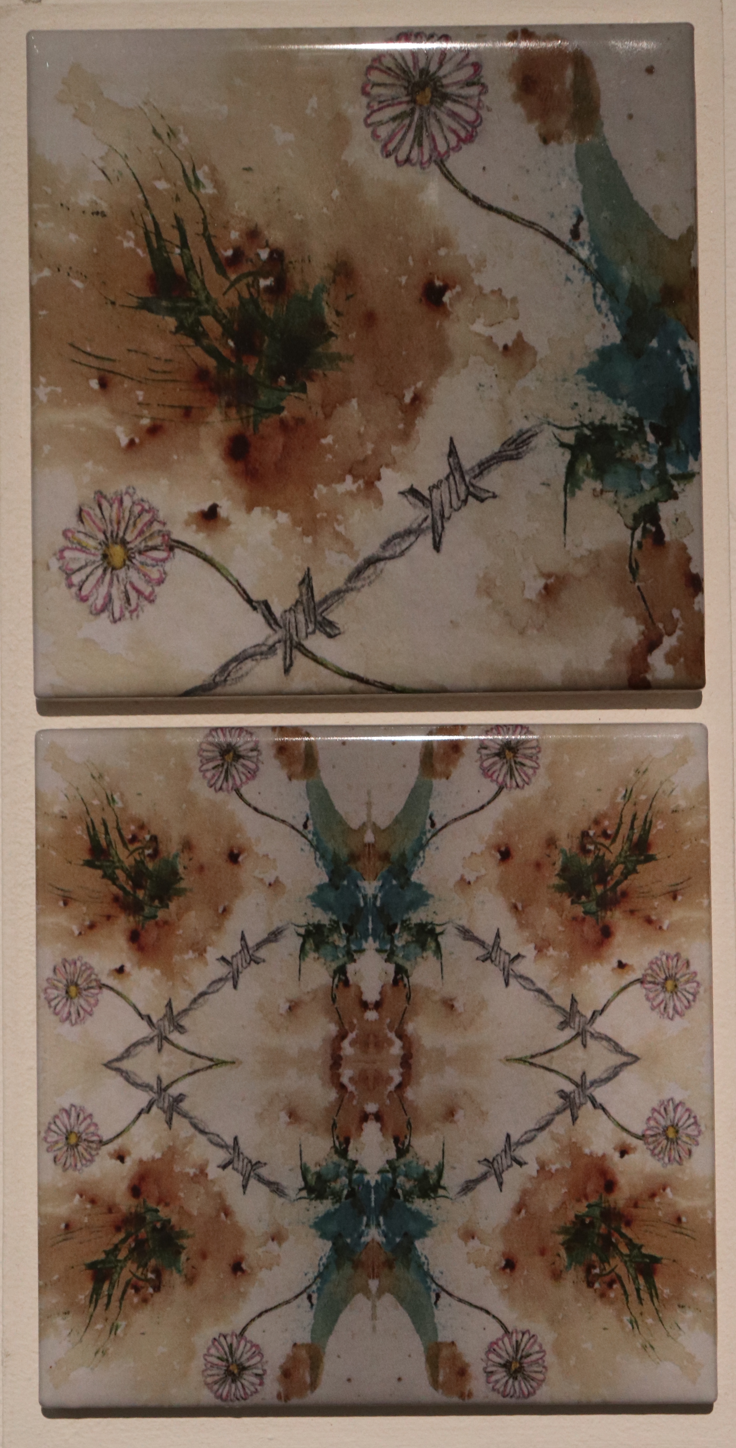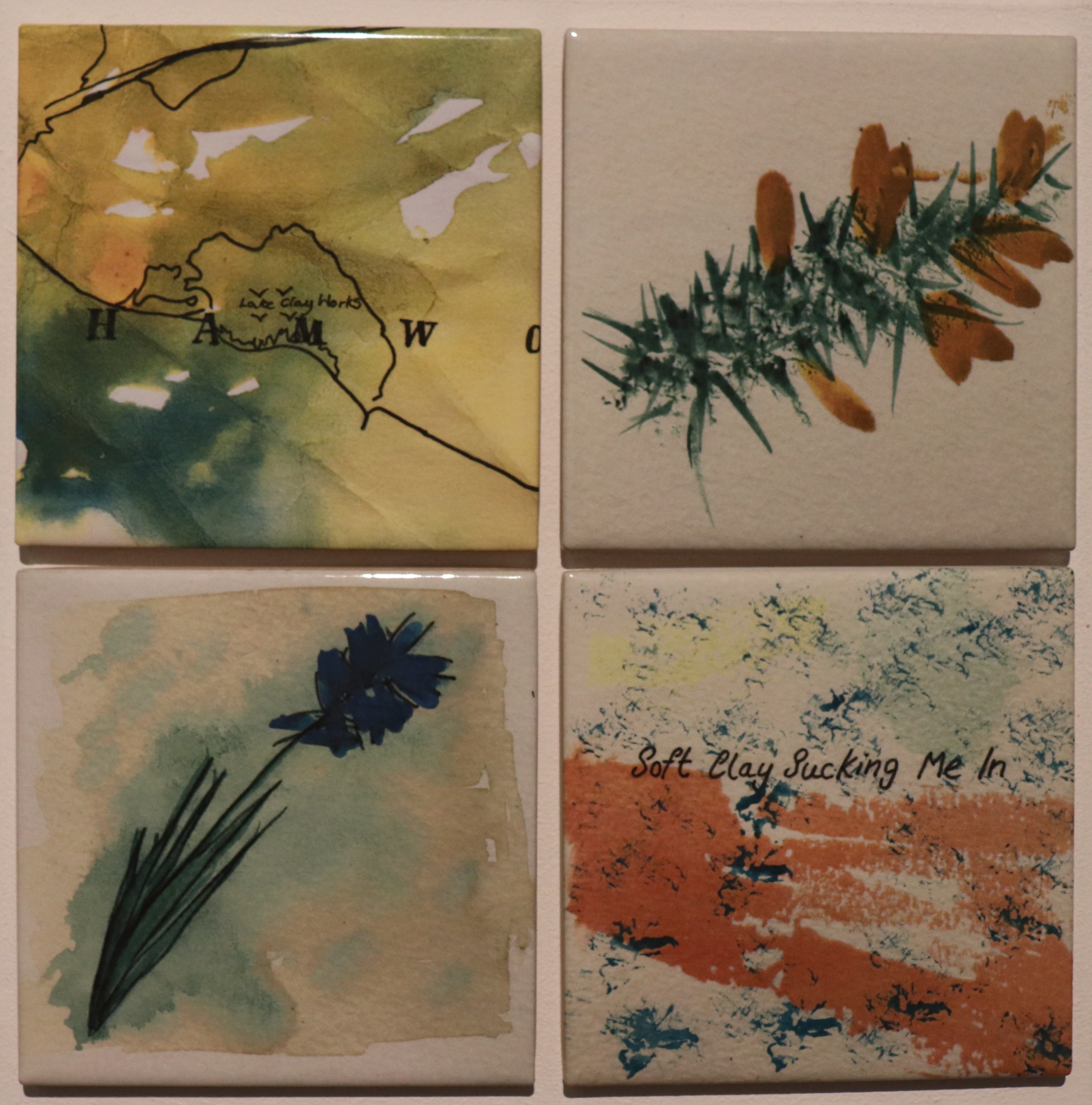 The selected work was then printed onto ceramic tiles, and mounted for installation, along with a selection of the original artwork revealing the process.