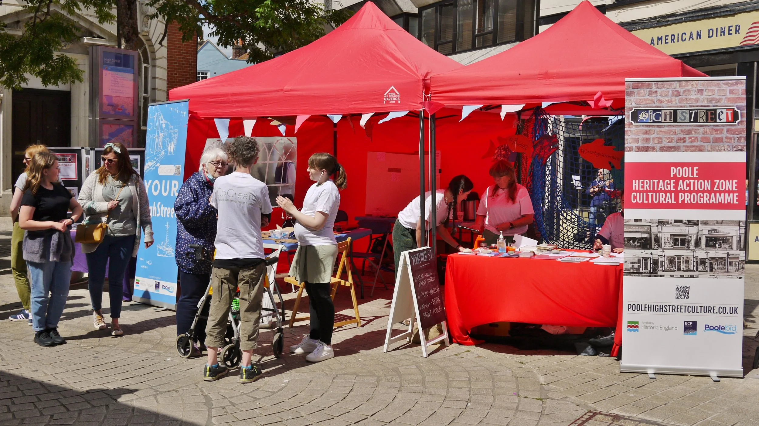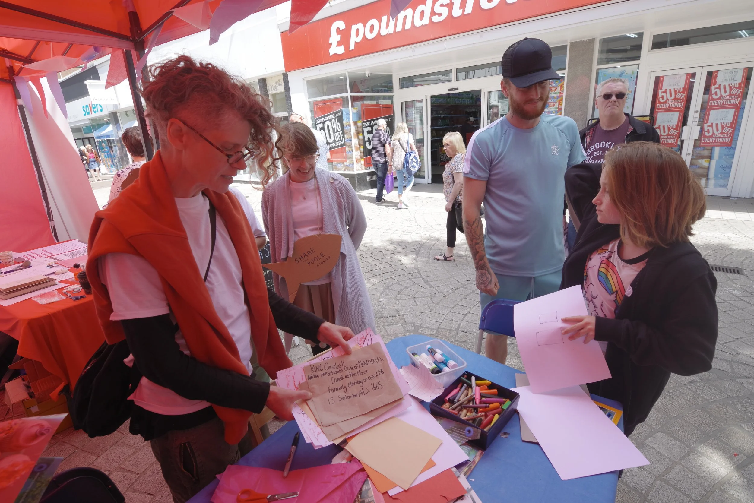 CoCreate artists, alongside locally commissioned artists, ran a range of creative activities on Poole High Street during summer 2022, culminating in a day-long exhibition showcasing the community’s ideas and artwork.